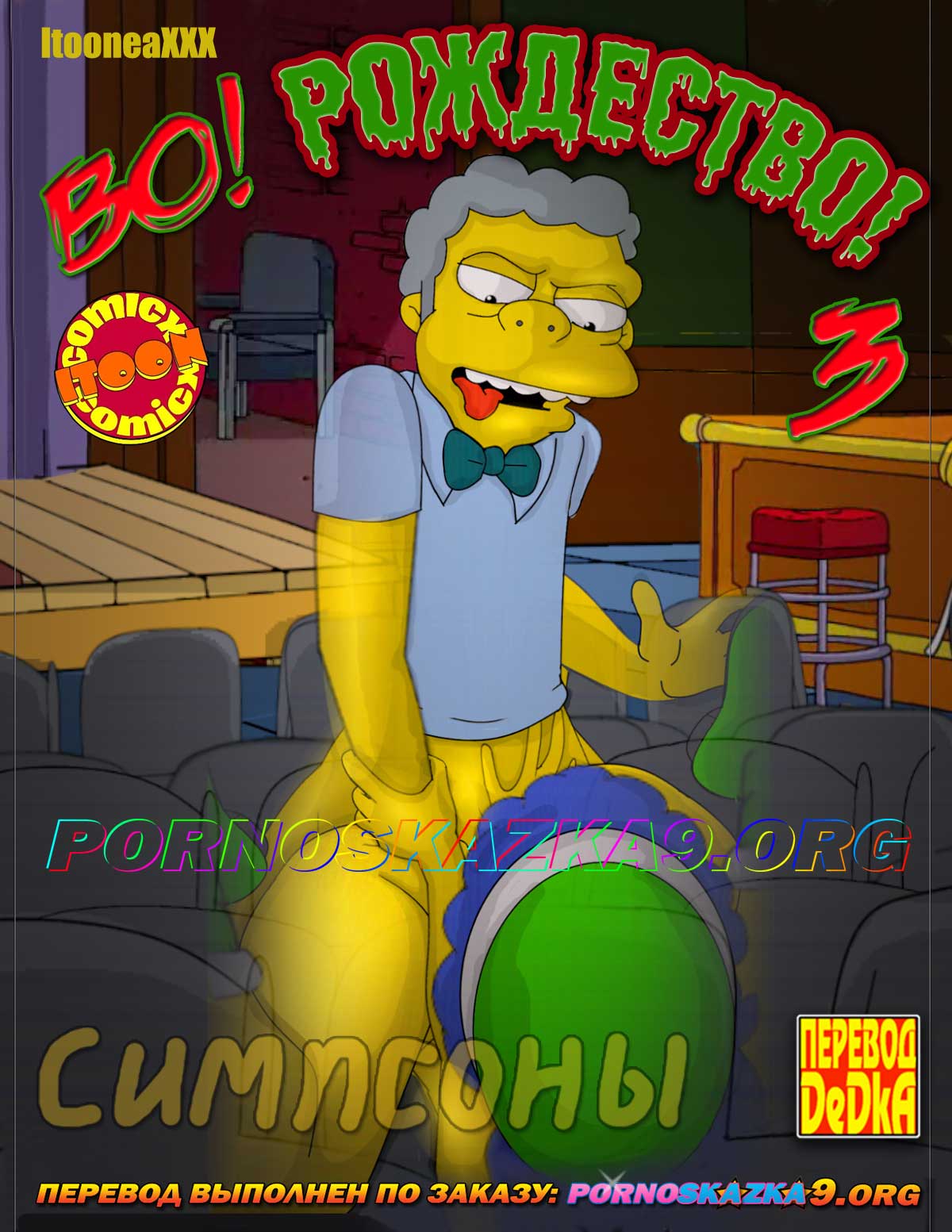 Порно комикс «Во! Рождество! Часть 3.» Симпсоны. Мо хотел спать, он очень устал, украшая перед Рождеством свою пивнушку, в надежде...